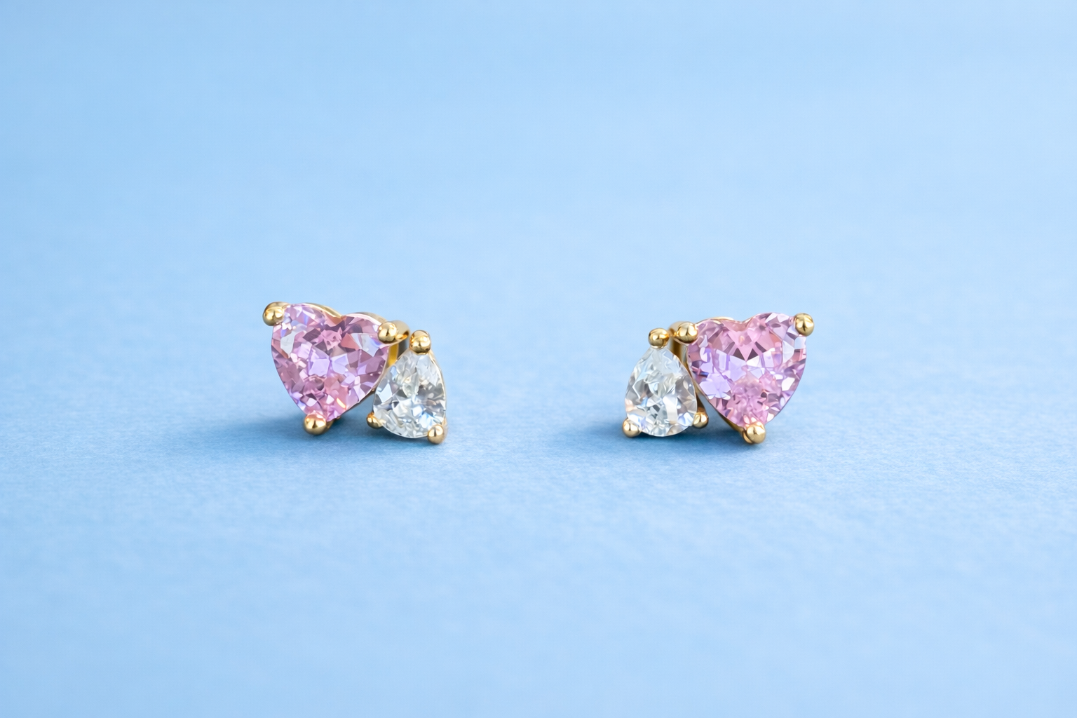 A delicate expression of softness and femininity, the Amour Set pairs our signature heart + pear bracelet with coordinating cubic zirconia studs for an effortlessly polished look.