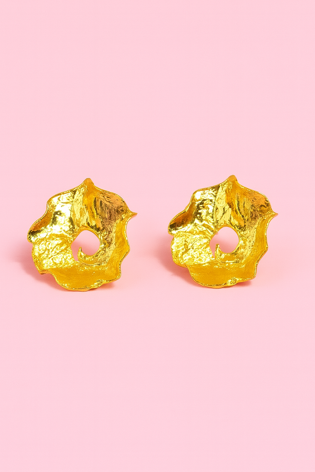Elevate your style with the Aurora Gilded Wave Earrings, a stunning statement piece inspired by the fluid beauty of nature. These handcrafted earrings feature an organic, wave-like design in a radiant gold finish, exuding elegance and sophistication. Perfect for the modern fashionista, these earrings are lightweight yet bold, making them ideal for both daytime glamour and evening allure. Add a touch of luxury to your collection and let these earrings speak volumes about your unique style.