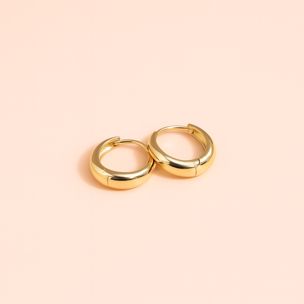 The Essential Huggies (12mm) are your new everyday staple — effortlessly polished, lightweight, and designed to elevate any look. Their smooth, domed silhouette catches the light beautifully, making them the perfect go-to hoop for daily wear, stacking, or a soft evening shine. Minimal, modern, and endlessly versatile.